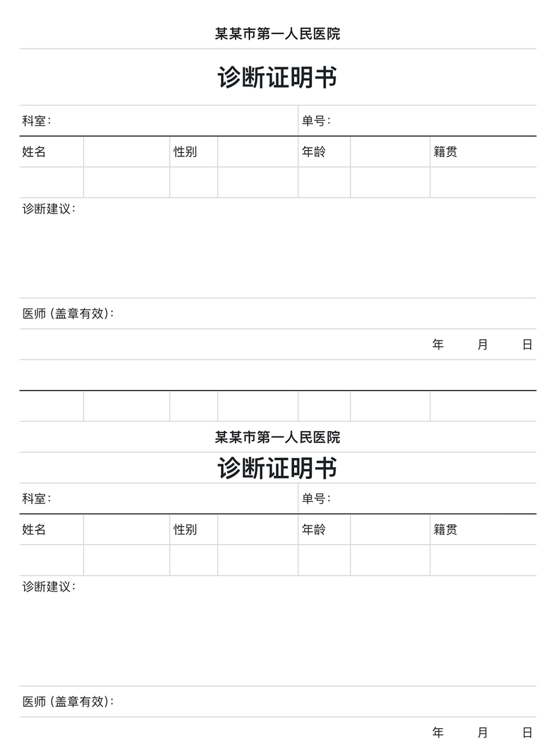该模版适用于医疗场景,帮助医院快速生成标准化的证明文件,内容涵盖患者信息、诊断意见和医师签名,便于统一管理与归档。