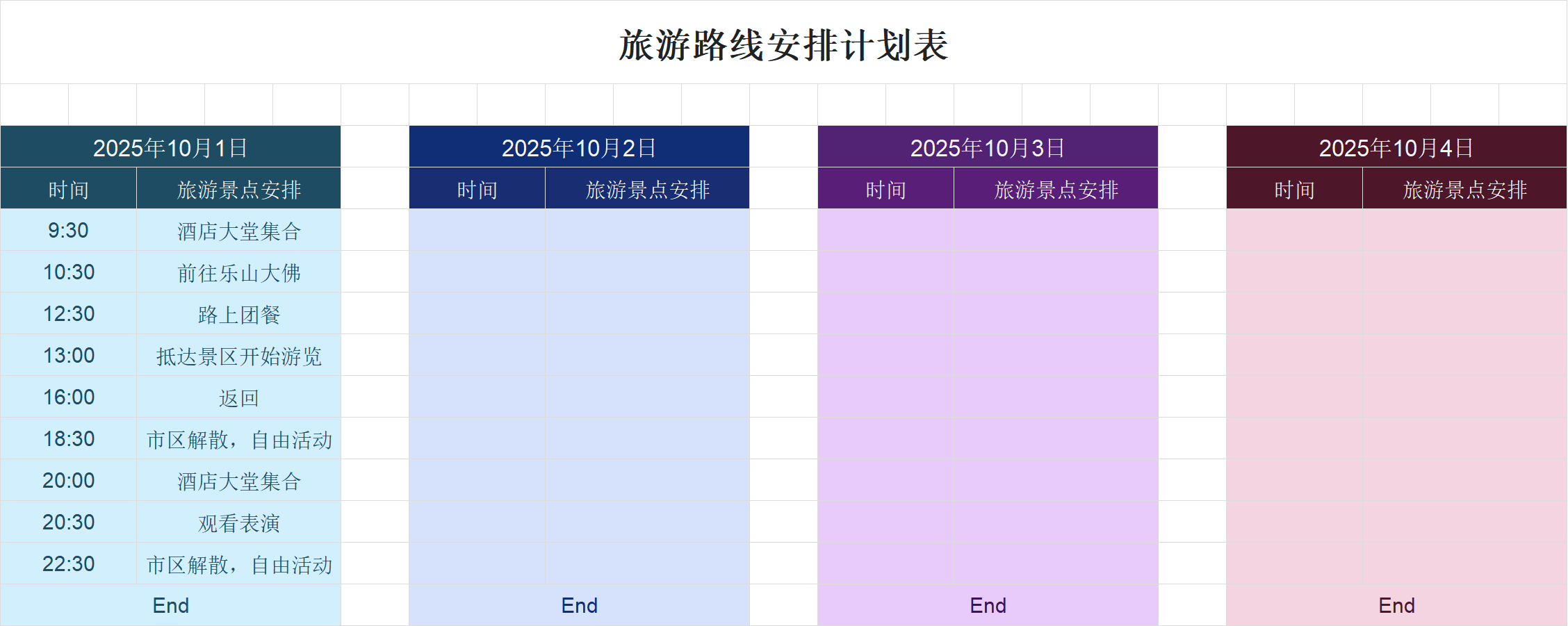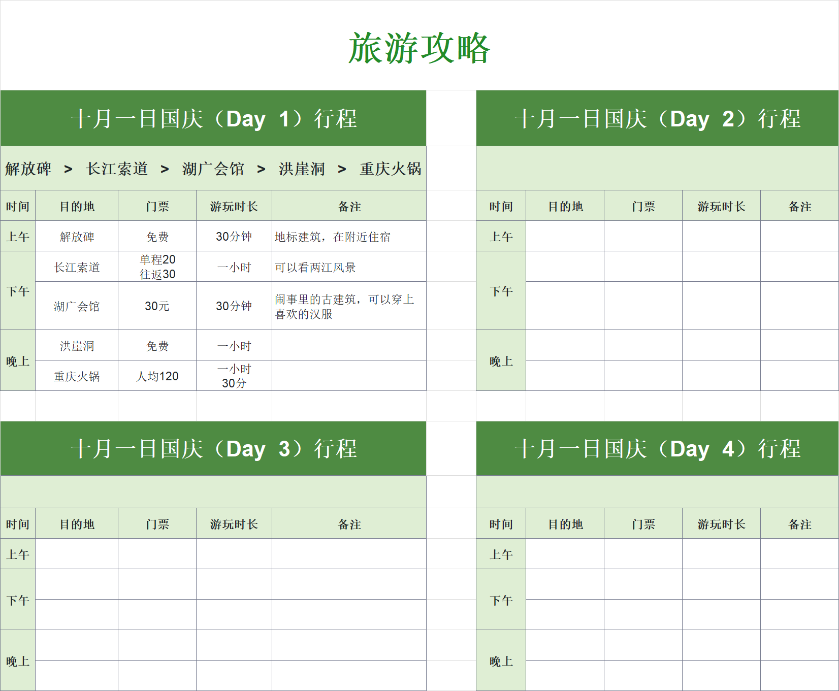 清晰划分每日行程时段,明确对应景点安排,让你随时掌握旅行节奏,避免行程拖沓或遗漏。
