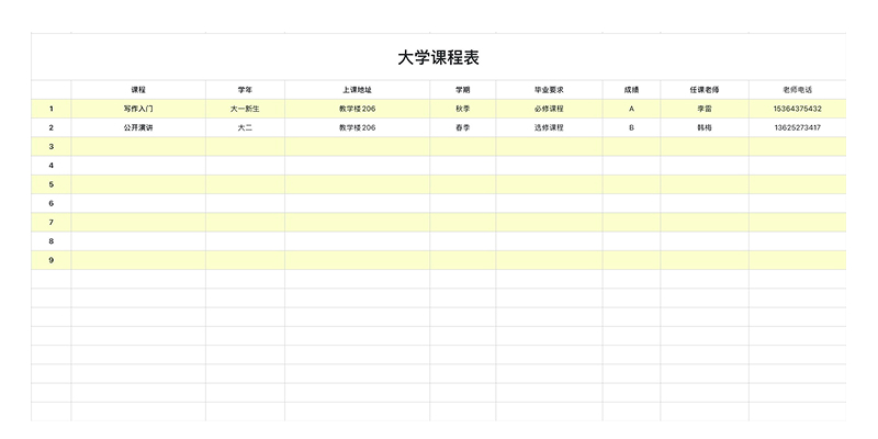 适合校领导对老师课后效果进行跟踪。模板可记录课程熟练程度、逻辑性、技巧运用、辅助工具的运用等。使用这份 教学表格Excel 模板后,可以快速分析教学优劣、调整下一期课程。