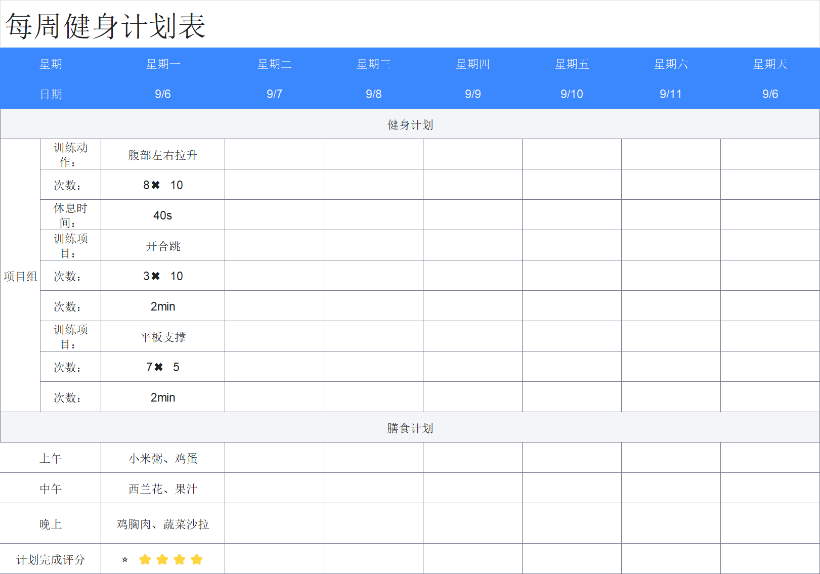 结合训练动作、次数、休息时间及膳食计划,从运动到饮食全方位助力健身管理。