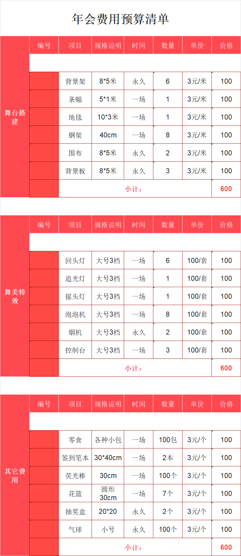 2025年即将过去,各公司都在紧张筹备年会,而统计费用预算是核心环节。合理的费用预算能避免超支风险。今天精选4款适配不同场景的年会费用预算Excel模板,覆盖活动、清单、采购、策划等流程,轻松实现预算精细化管理。