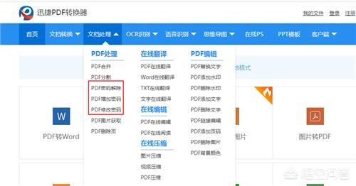 我们可以通过PDF转换器来进行文件加密。打开网页后,点击“文档处理”选择“PDF增加密码”功能。