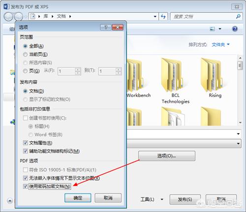 然后单击下方的“选项”功能,勾选“使用密码加密文档”,输入密码加密PDF文件。