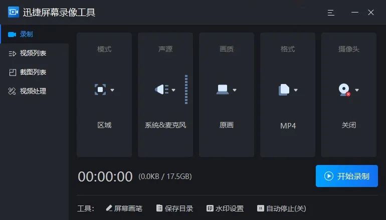 如果你觉得Win10自带的录屏不够好用,可以使用专业的录屏软件来进行录制。比如我经常用到的迅捷屏幕录像工具就很方便。自由设置录屏区域、音源,画质、格式等。
