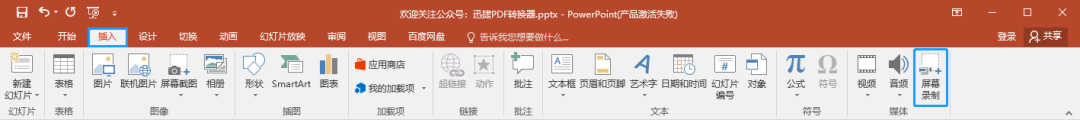 大家常用的PPT里面,就藏着录屏神器功能,不过需要2013以上的版本。打开PPT点击「插入」,找到「屏幕录制」功能。