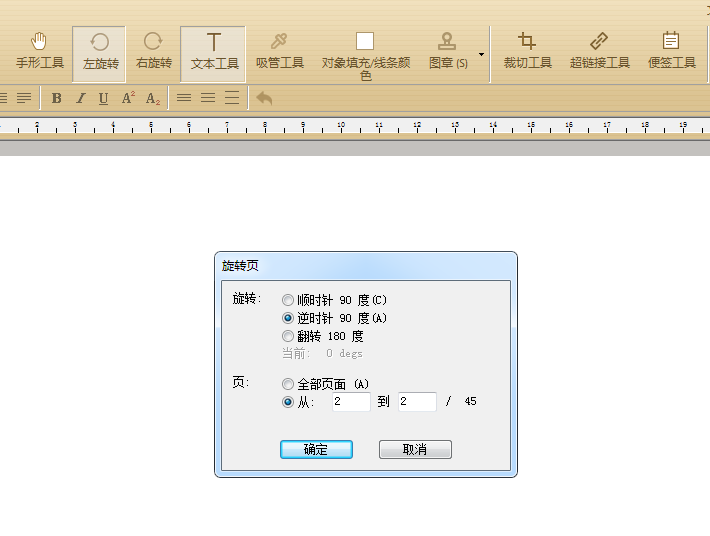 接着通过点击上方工具栏中的左旋转或右旋转进入页面旋转设置。