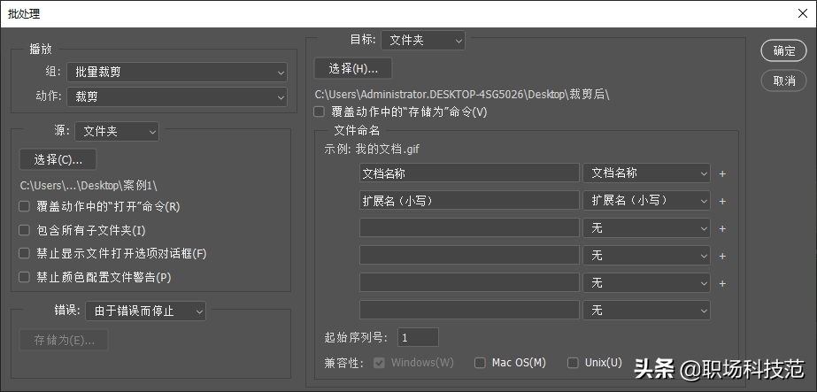 6.确认源文件夹和导出文件夹无误后,点击【确定】,PS就开始自动化裁剪图片了。