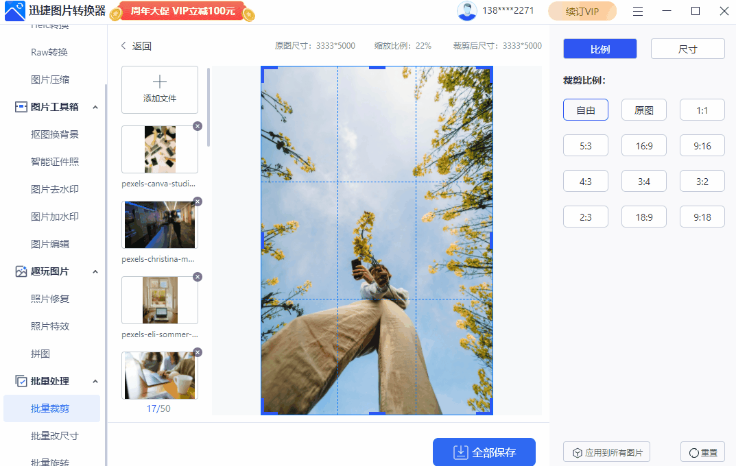 1.如果你觉得PS操作比较复杂,也可以借助专业的迅捷图片转换器,进行一键裁剪,除了固定的比例,还可以自定义裁剪。