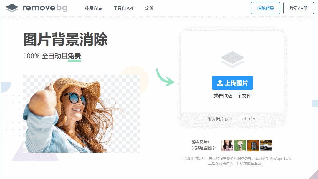 这个老牌的抠图网站,大家应该都不陌生,这 是一款非常神奇的在线人像照片/物品图片背景快速去除工具,你只需要上传图片,它就会利用「人工智能」技术全自动帮你扣掉背景,5 秒钟就能给你一张透明的移除背景后的主体照片。
