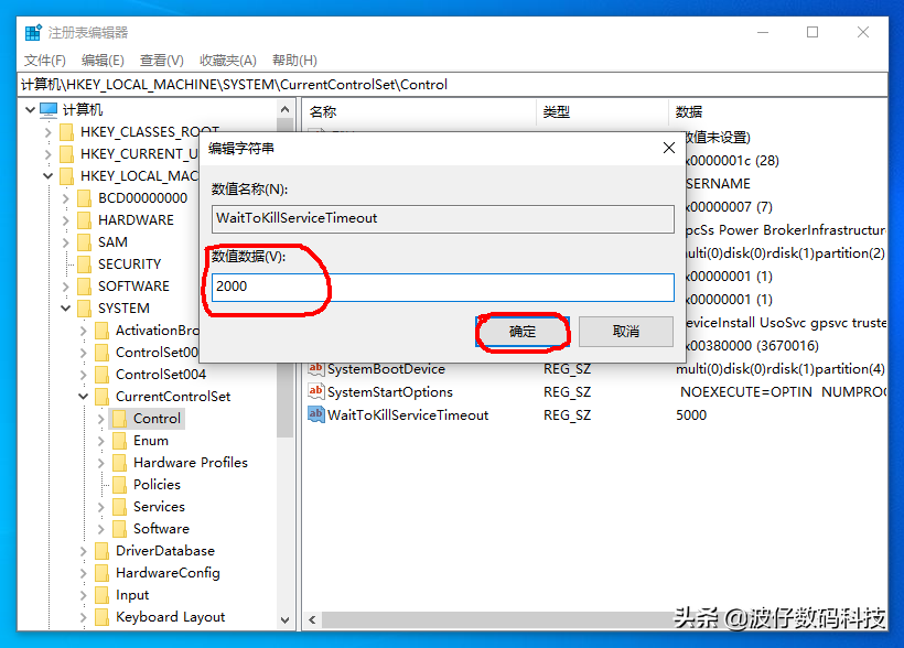 三、打开“编辑字符串”对话框,在“数值数据”文本框中输入“2000”,单击“确定”按钮即可完成设置。