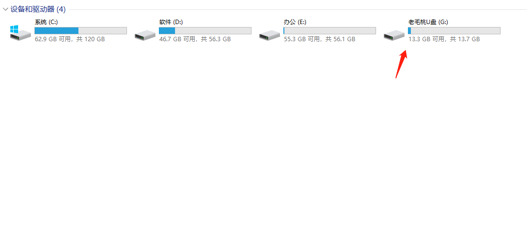 3、等待个3分钟左右,U盘最终会被制作成如下图所示,里面包含了一个小型的启动系统
