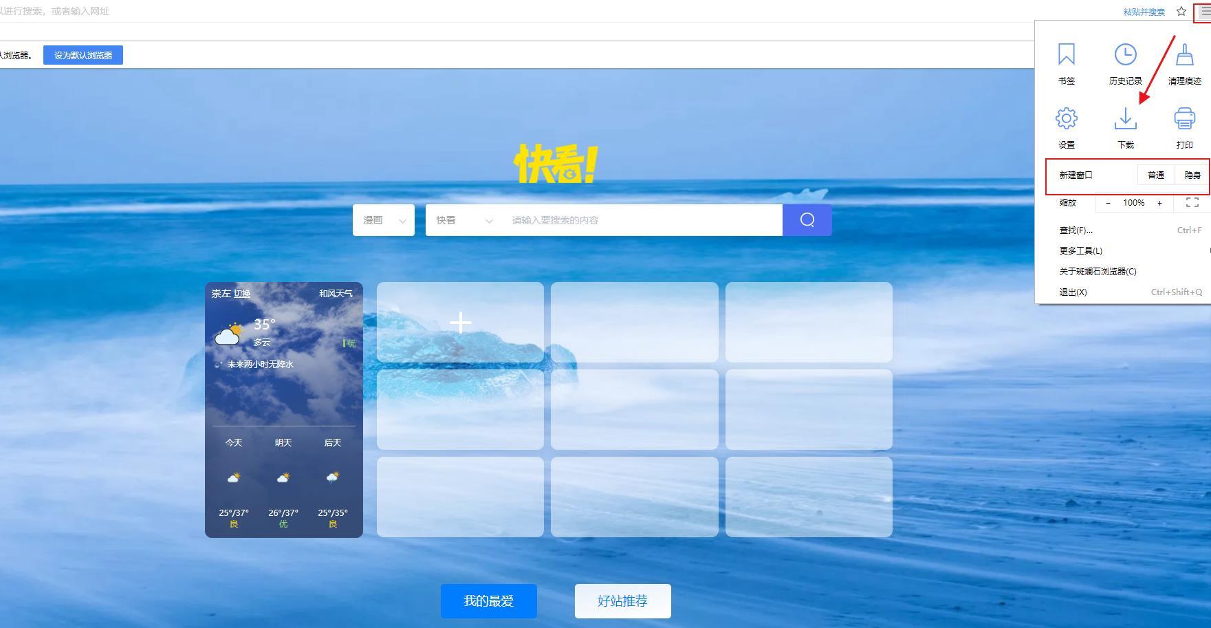 如果我们对网络进行检测后,发现网络正常的话。我们也可以查看是否是浏览器中的Cookie文件出现了问题,查看的方法也是比较简单的,那就是我们在打开的斑斓石浏览器中,进入斑斓石浏览器的隐身模式,这个功能主要就是用于保护用户的隐私的,我们可以通过打开菜单栏,对“新建窗口”进行开启隐身模式,或者是使用我们的快捷键“ctrl shift N”,进行快速进入我们的隐身模式窗口。