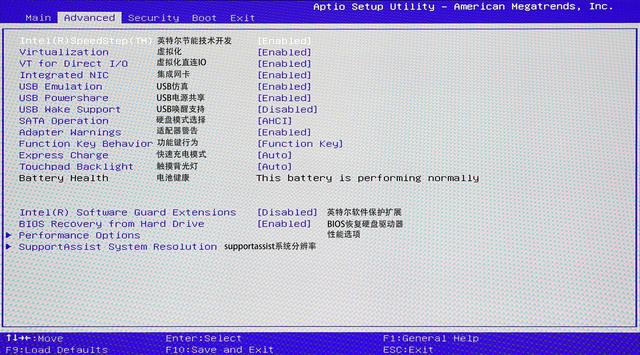 硬盘模式选择:BIOS设置里SATA Operation有2个选择,默认是RAID ON,另外一个选项是AHCI。RAID是磁盘阵列,有两块硬盘可以组RAID on0提升读写速度。