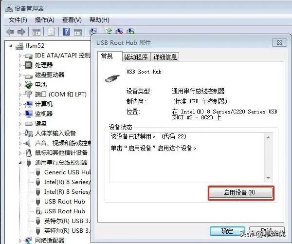 5、这时候,我们点开其中的任何一个,就会发现这个设备状态都是禁用的,就是因为这个导致USB接口不能使用,点击启用设备字样进行USB接口启用。