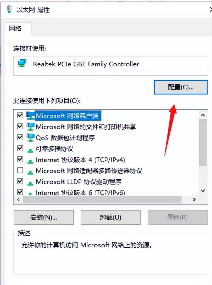 3、点击属性窗口中的【配置】按钮。