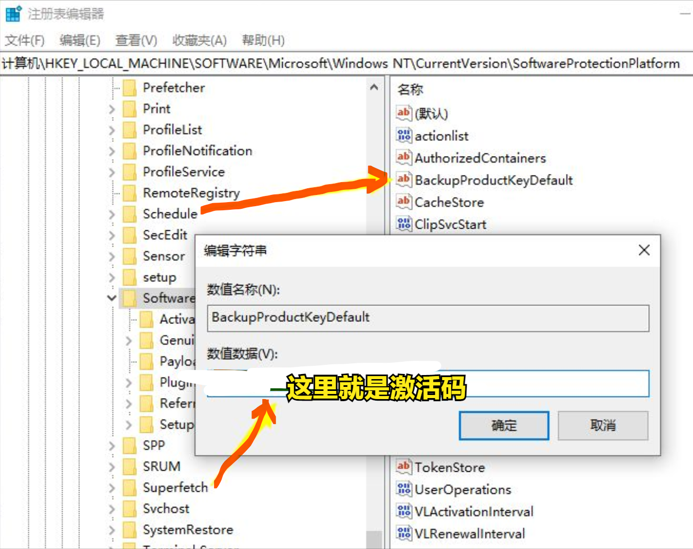 注意:打开BackupProductKeyDefault注册表”键值,就是可以查看到自己的系统激活码