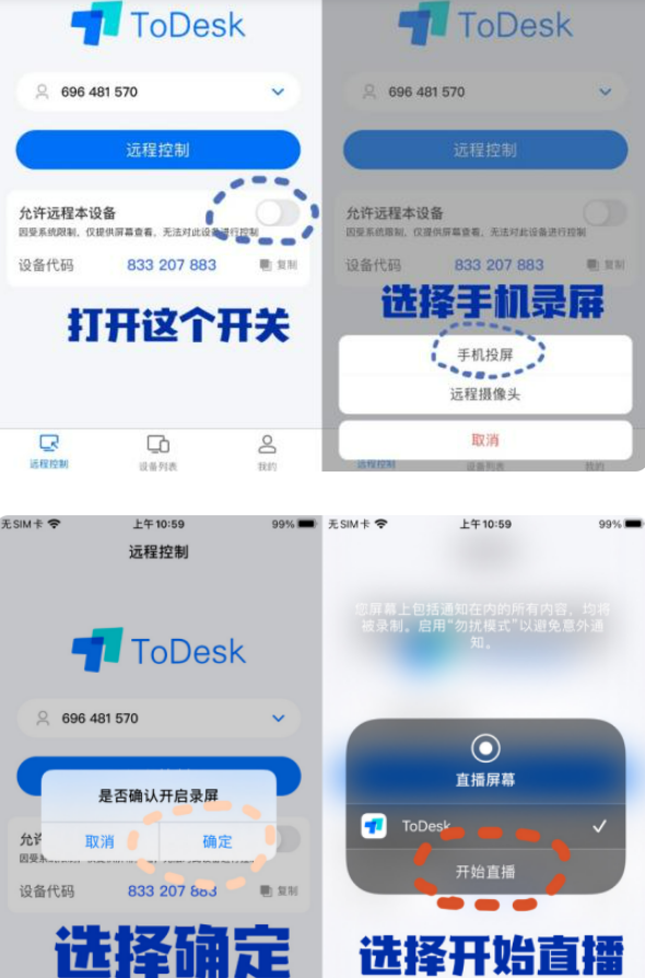 —苹果手机可以打开「允许远程本设备」的开关,随后开启录屏,界面上就会出现连接的临时密码。