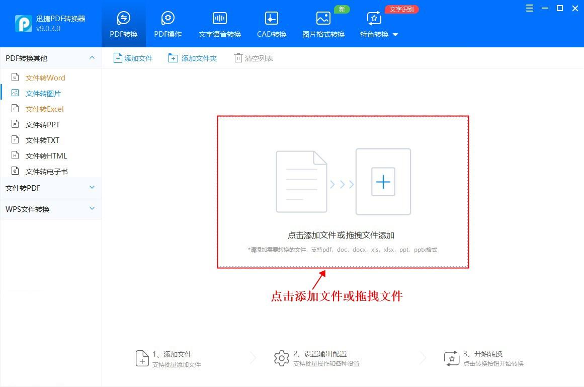首先,我们下载并安装软件,打开软件,点击上方的【PDF转换】,在左侧【PDF转换其他】列表中点击【文件转图片】。