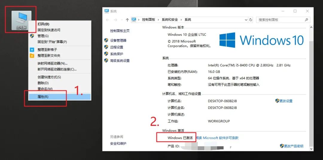 如果是新电脑,请先检查电脑外包装箱贴纸或咨询经销商,确认电脑是随机附赠Office。然后,打开电脑,右键“此电脑”,选择“属性”,确定电脑win10系统已激活,同时确认预装的win10系统激活已超过2个小时。