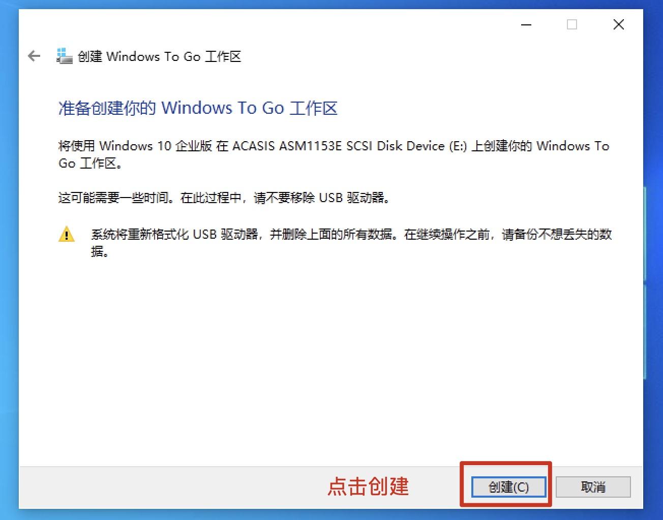 5.直接点击创建win to go的工作区(也就是把系统装到移动硬盘上)