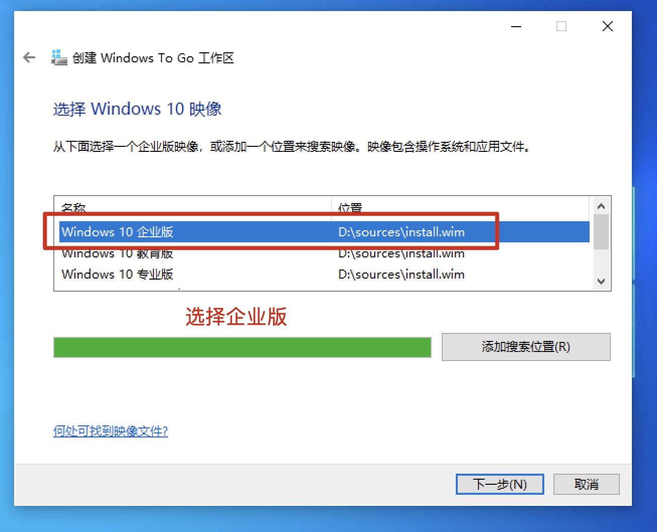 3.在提示框中找到“win 10 企业版”,一定要挂载我们之前下载的win10镜像文件,如下图: