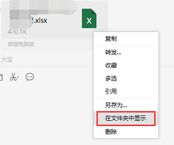 1、到接收文件的微信小窗,右键接收到的文件,选择 “在文件夹中显示”(如图1)。
