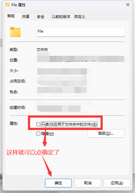 2、弹出文件夹后,在文件夹上点击“上移” 按钮(如图2),来到上一层文件夹,在空白处右键选择属性,或者点两次上移按钮,找到到“File”文件夹,右键选择属性(如图3),去掉“File文件夹的”属性中“只读”前面的勾,点击确定。