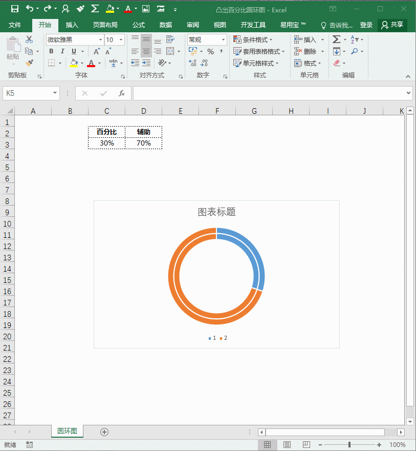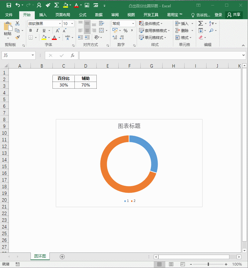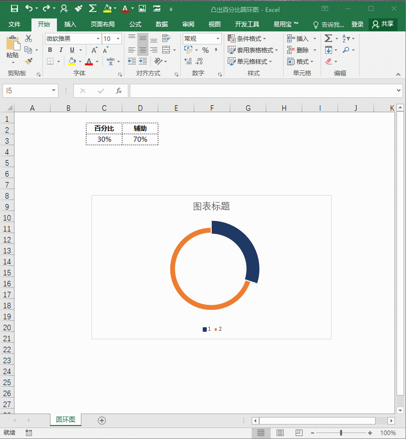 关于图表颜色,可以根据不同应用场景自定义填充,一张凸出圆环图就制作完成了。