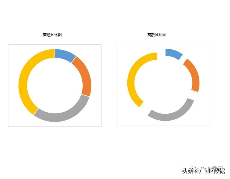 圆环图常见的有两种类型,一种分离型,一种普通型。展示效果如下: