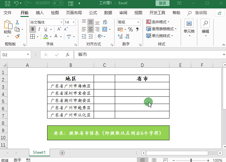 1、首先打开一个要提取字符的表(如下图)– 现在我要把省市的信息提取出来。