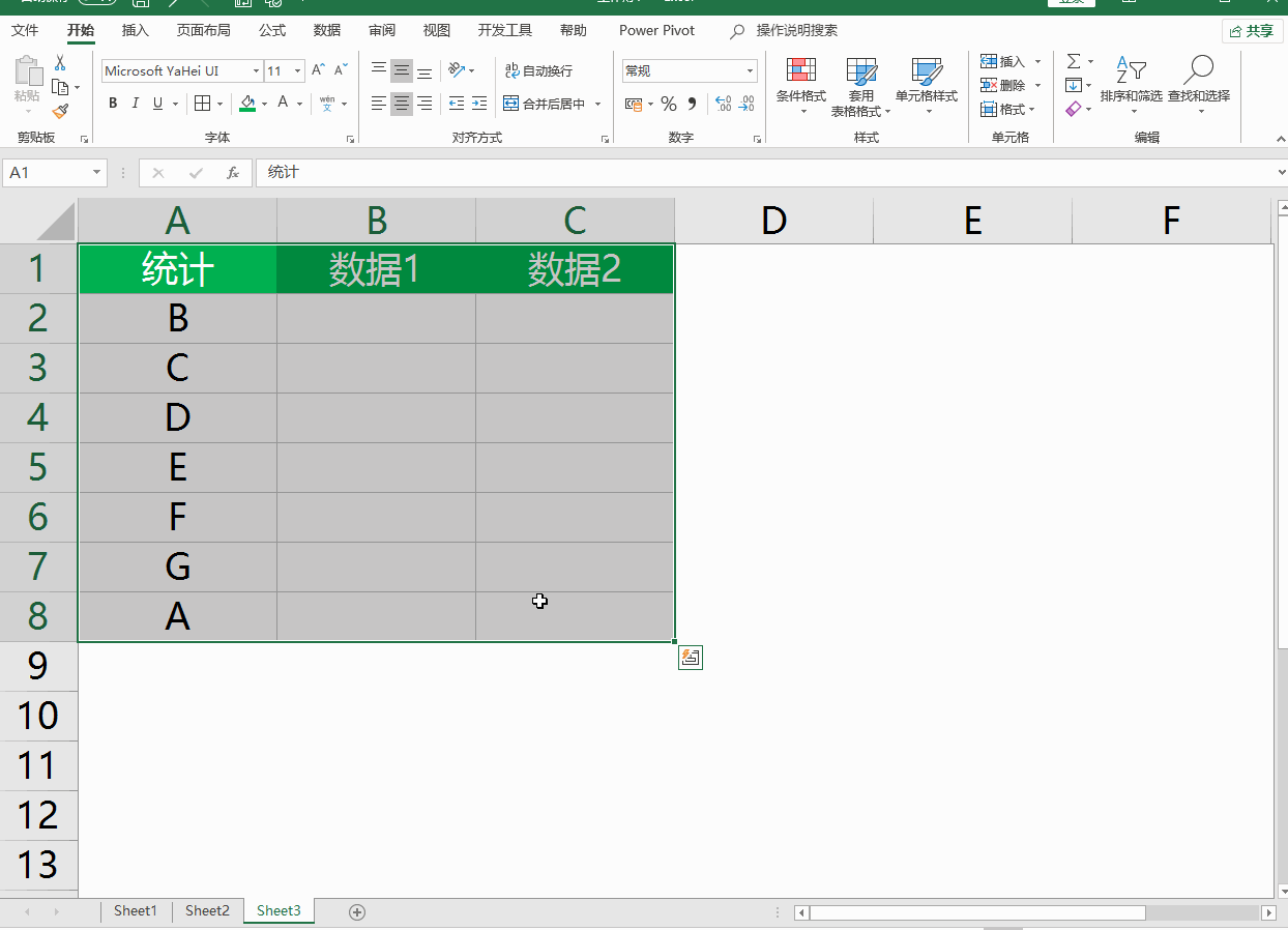 如下图的excel工作表,选择Sheet3的A1:C8单元格区域然后选择【数据】选项卡-【合并计算】函数默认选择【求和】,引用位置选择Sheet1的数据区域然后点击【添加】,再选择Sheet2的数据区域点击【添加】,最后【标签位置】勾选【首行】和【最左列】点击确定即可统计完毕。
