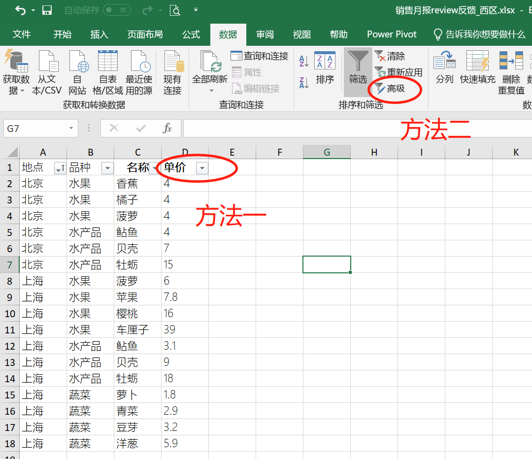 小伙伴们大家好,我们都知道在Excel中有两种筛选方式,如下图,方法一和方法二。方法一比较简单,就是个单一条件筛选,按照升序,降序,颜色,文本什么的。很多时候都不能满足我们的筛选需求。如果要满足多个条件筛选怎么办呢?今天我们就重点来介绍下“高级筛选”的使用方法: