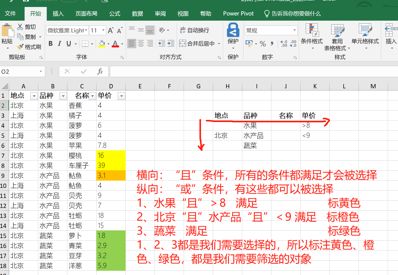 这就表示,所有符合以上三个条件中的其中任何一个都是我们的目标筛选值。