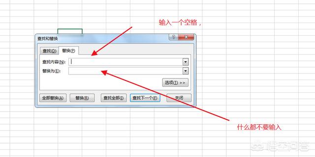 这个时候我们可以试一下表格中是否存在空格,我们按Ctrl+H调出替换窗口,在查找内容中输入一个空格,然后在替换为中什么都不要输入,直接点击确定,这样的话就批量将空格替换空了