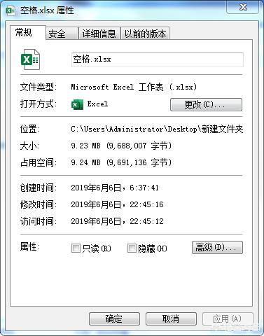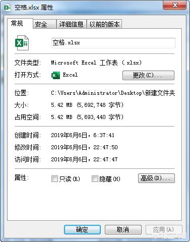 做完上面的2步后我们可以看到表格还剩下5.4mb,这个时候就要考虑是不是有除了空格以外的不可见字符的存,常见于我从系统中导出的表格,这样的字符起到了占位的作用