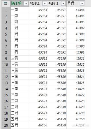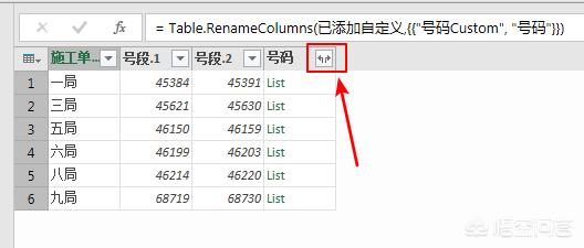 自定义列公式={[号段.1]..[号段.2]},表示生成从一个初始值到一个结束值的List清单。