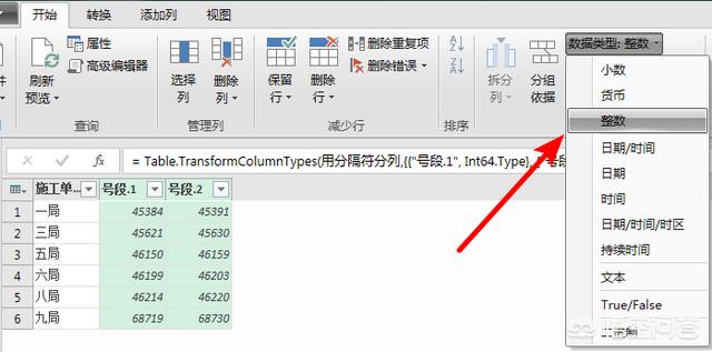 ③设置【号段1】和【号段2】的数据类型为【整数】,如图所示: