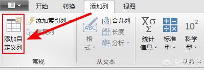 ①切换到【添加列】选项卡,然后单击【添加自定义列】,如图所示: