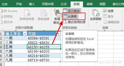切换到【数据】选项卡,在【获取与转换】分区中,点击【从表格】将当前表格导入查询编辑器。