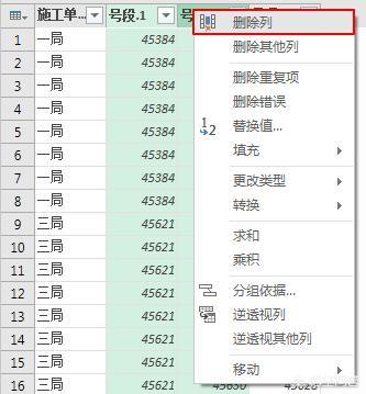 选中两个多余的字段并单击鼠标右键,在弹出的菜单中选择【删除列】,把无用的列删除掉,如图所示。