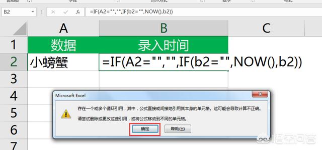 这个公式存在循环引用,这里不用管,直接点击确定。
