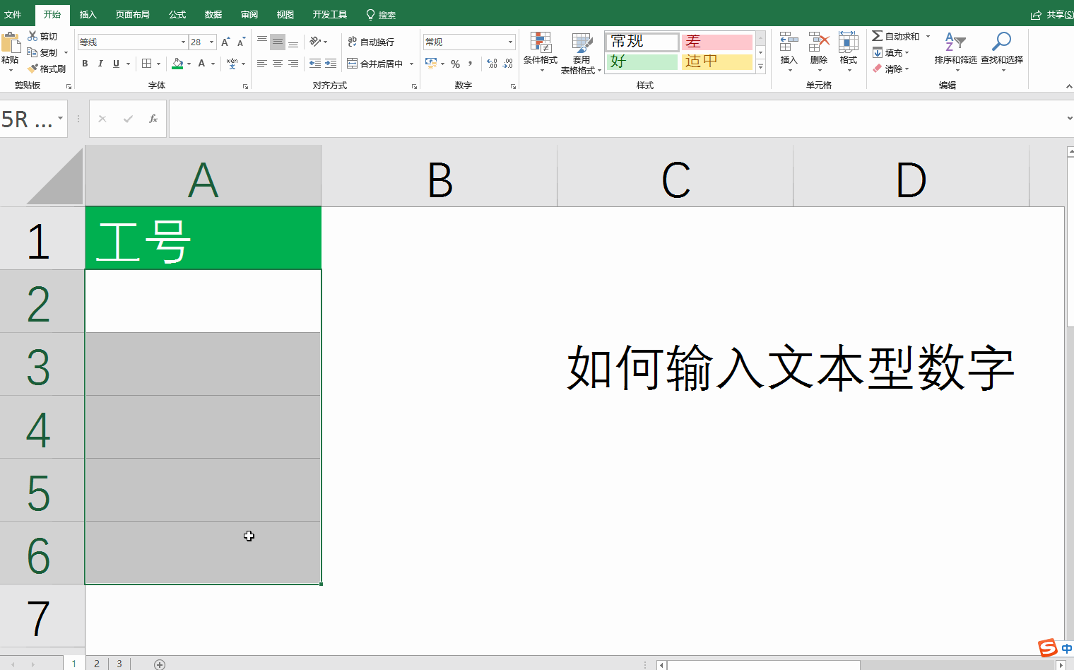 比如在excel单元格中输入工号是要以0开头,这时我们直接在单元格输入001,就会变成1,前面的0不会显示,所以先选择单元格区域设置格式为“文本”,然后再输入001。操作动图如下: