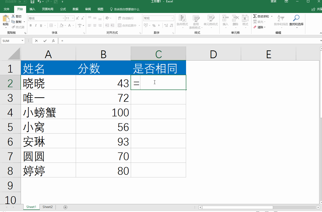 公式说明:COUNTIF(Sheet2!$A$2:$A$8,Sheet1!A2)首先用COUNTIF函数统计表1的姓名在表2中有没有出现过,有出现就会返回出现的次数,如果没出现过就会返回0,然后用IF函数判断COUNTIF函数结果为0的就返回“不同”,否则返回””(空)。