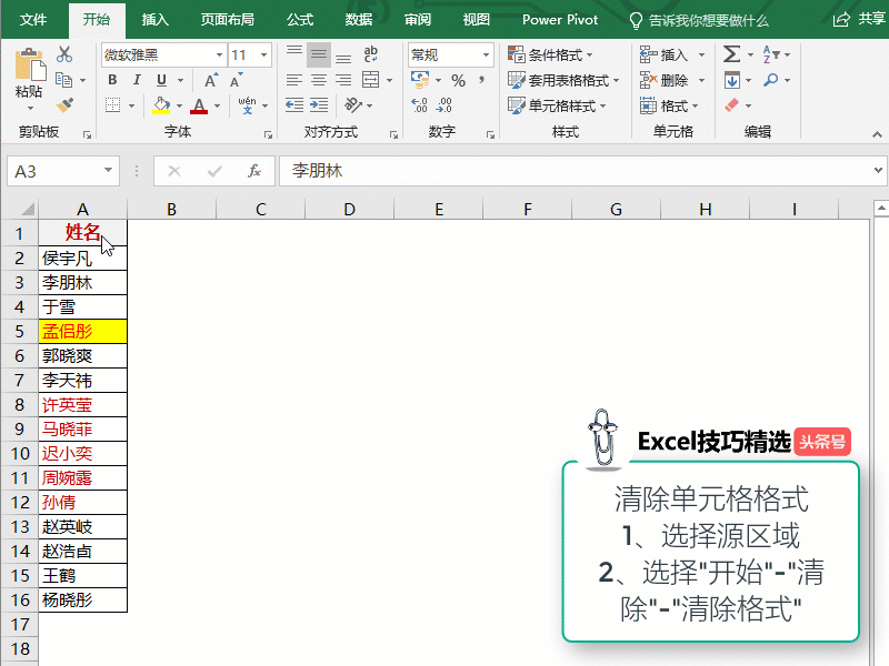 选择源区域,然后菜单选择”开始”-“清除”-“清除格式”。