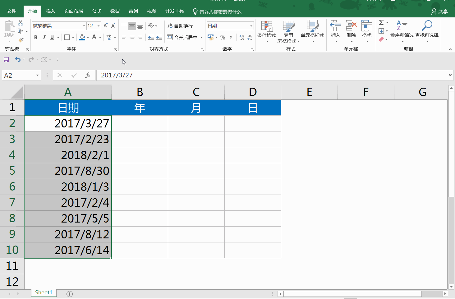 日常工作中,处理带有日期的excel表格时,某一列中显示含有年月日的日期,需要将年、月、日拆分开分为三列显示,如何操作呢?下面我们来看操作。