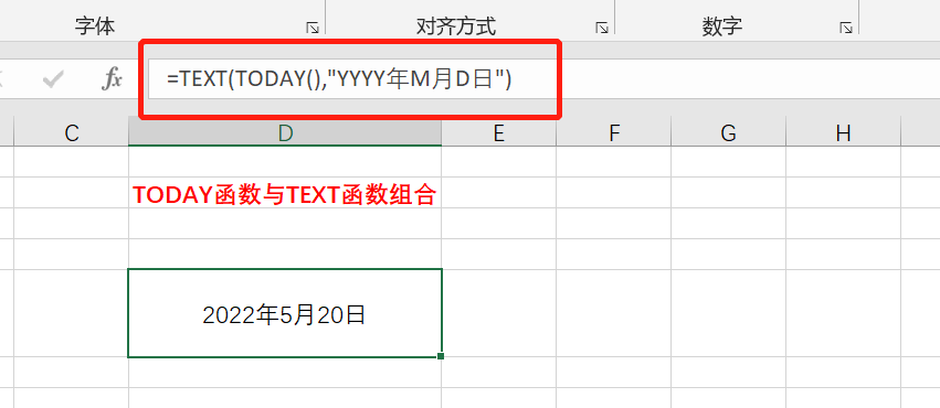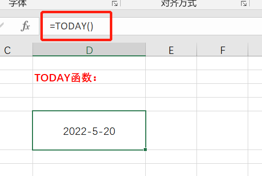 与NOW函数相似,直接在单元格中输入以上TODAY函数的表达式,就可以返回今天的日期。