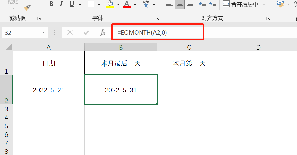 如果我们想知道本月最后一天或者本月第一天的日期,就可以用EOMONTH函数。