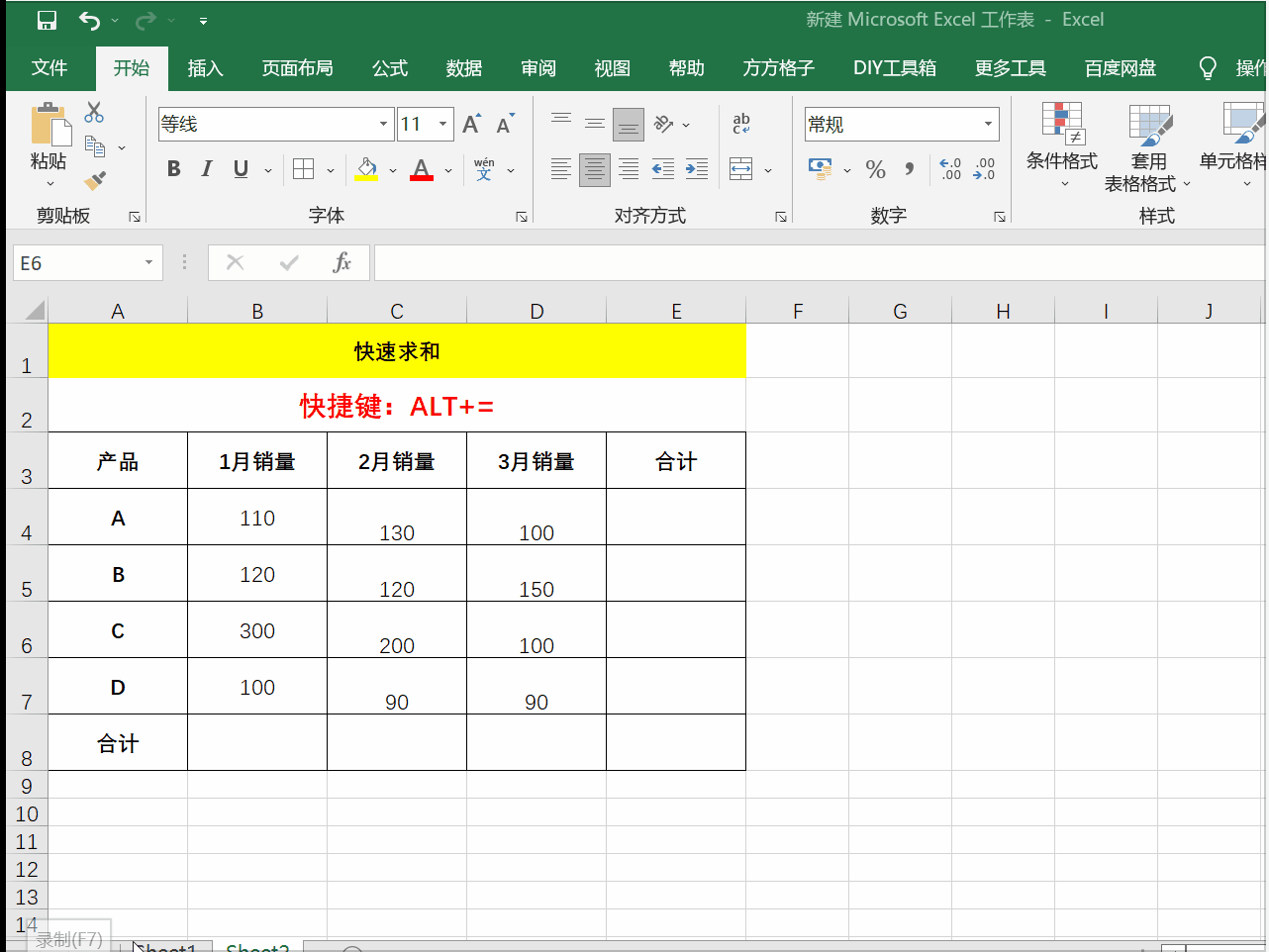 1、批量求和:ALT+=