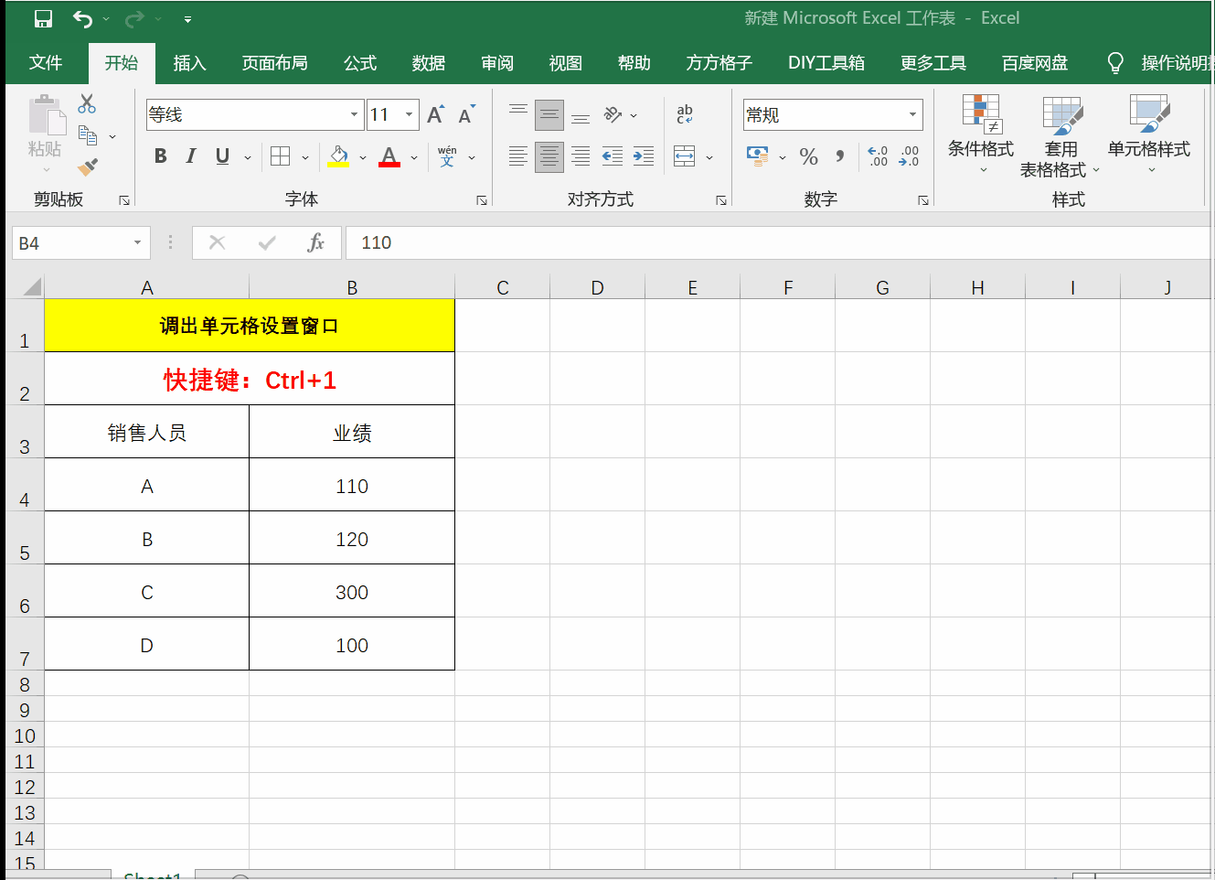 快速调出设置单元格窗口