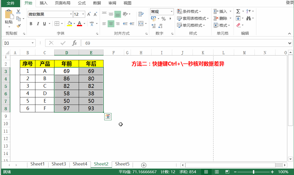 方法二:快捷键Ctrl+\一秒核对数据差异